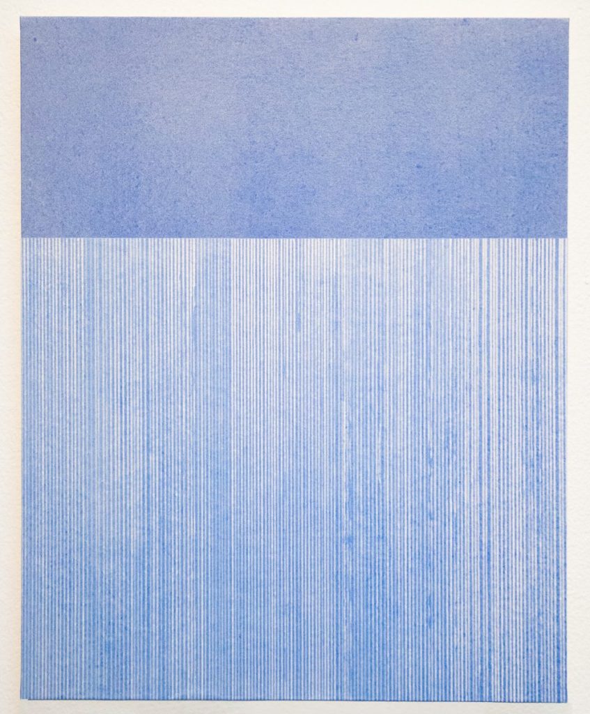 Where Keady’s work hides things in plain sight, O’Sullivan’s practice arrives through quieter means. Her prints are built from disciplined sequences of mark-making, shaped by repetition, rhythm and restraint, and underpinned by a minimalist sensibility in which each gesture functions as an intentional pause. Working primarily with mokuhanga, the water-based woodblock process, and acrylic ink on washi, she pays equal attention to time and materials. The resulting work does not depict an image so much as create a condition: one of clarity, quietude and focused looking. Repetition and silence open a contemplative space rather than filling it.
