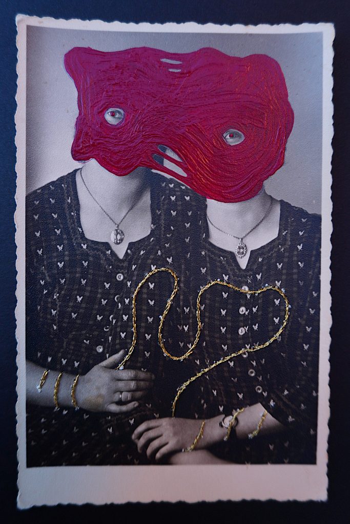 At a Berlin flea market, he purchased a selection of vintage photographs and postcards from the first half of the twentieth century. With no fixed concept and no end goal, he began to work directly onto them. There were no work-in-progress videos, no algorithm-friendly documentation, no performative sharing. Just time, focus, and material.