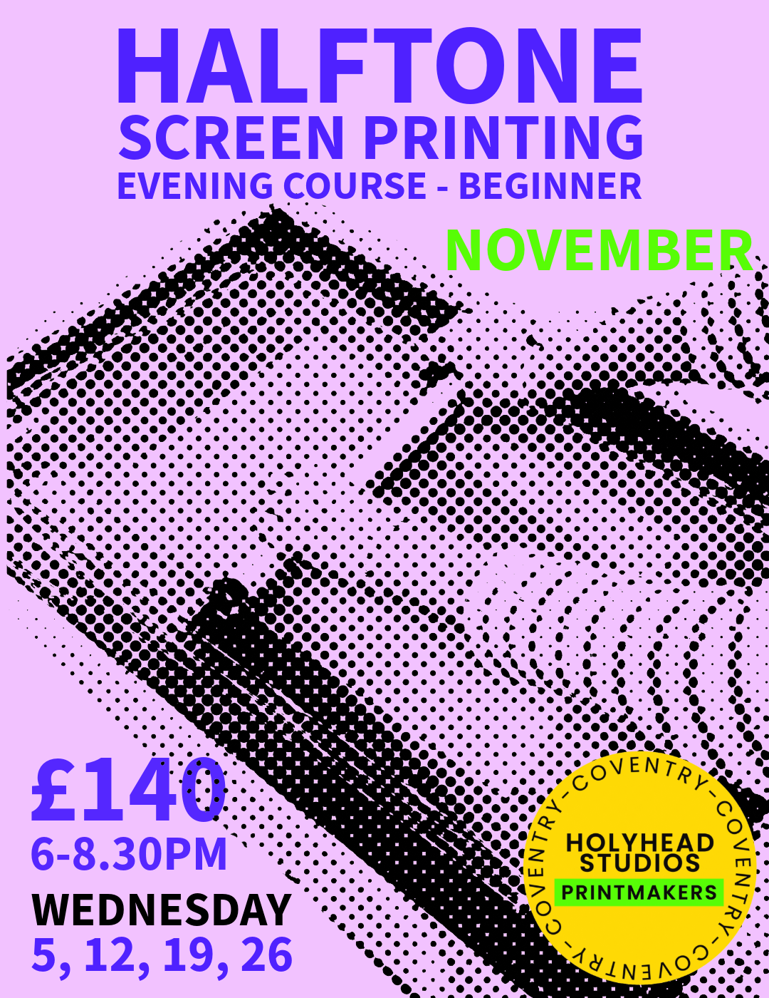 This course explores the halftone screen printing technique used to reproduce photographic images by breaking down the image into tiny dots of varying sizes.