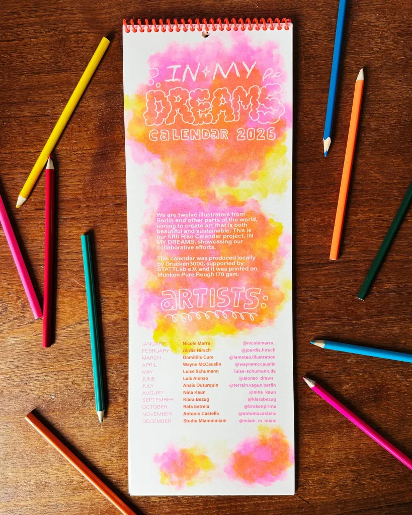 Our fourth risograph calendar project, Dreams, illustrates our collaborative efforts.