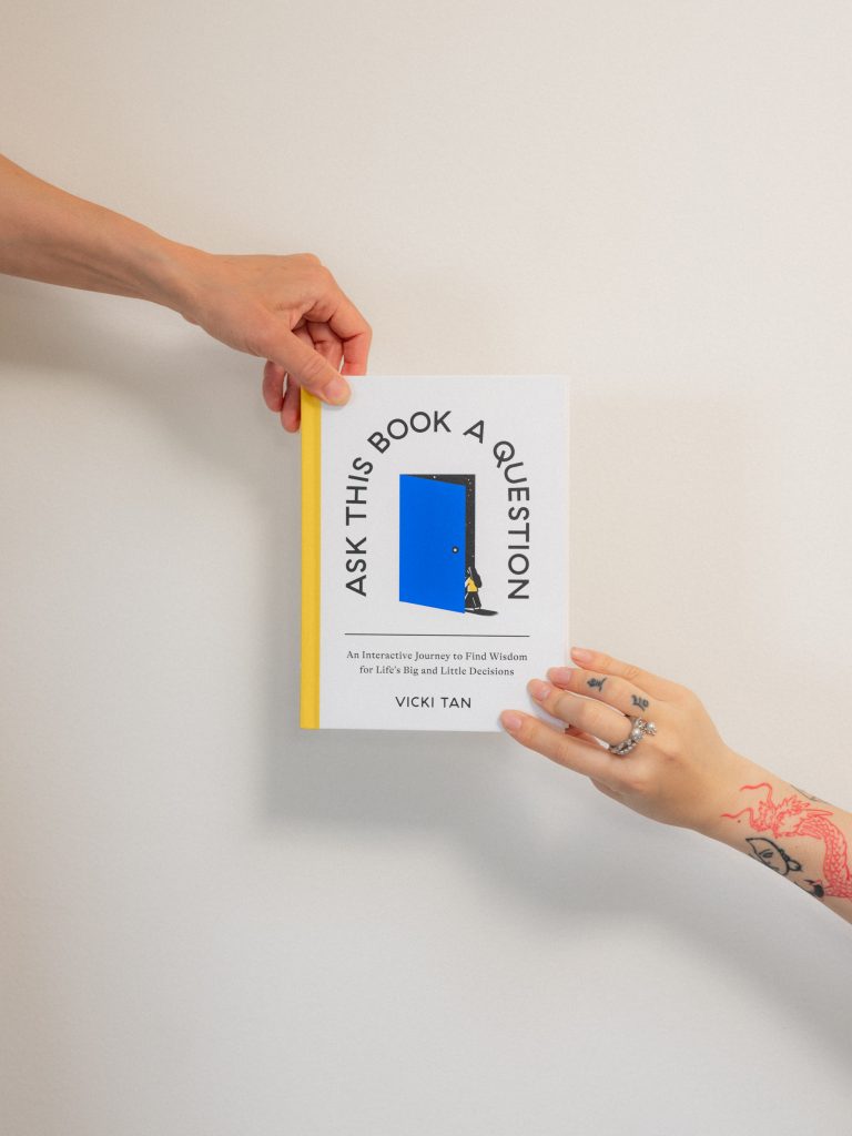 Vicki Tan is a Taiwanese-American designer and author based in San Francisco. Her work explores how people make sense of choice and uncertainty through structure, story, and visual systems. Ask This Book a Question brings together her interests in behavioural science, product design, and publishing, offering a thoughtful example of how books can function as interactive tools for thinking rather than static containers of information.