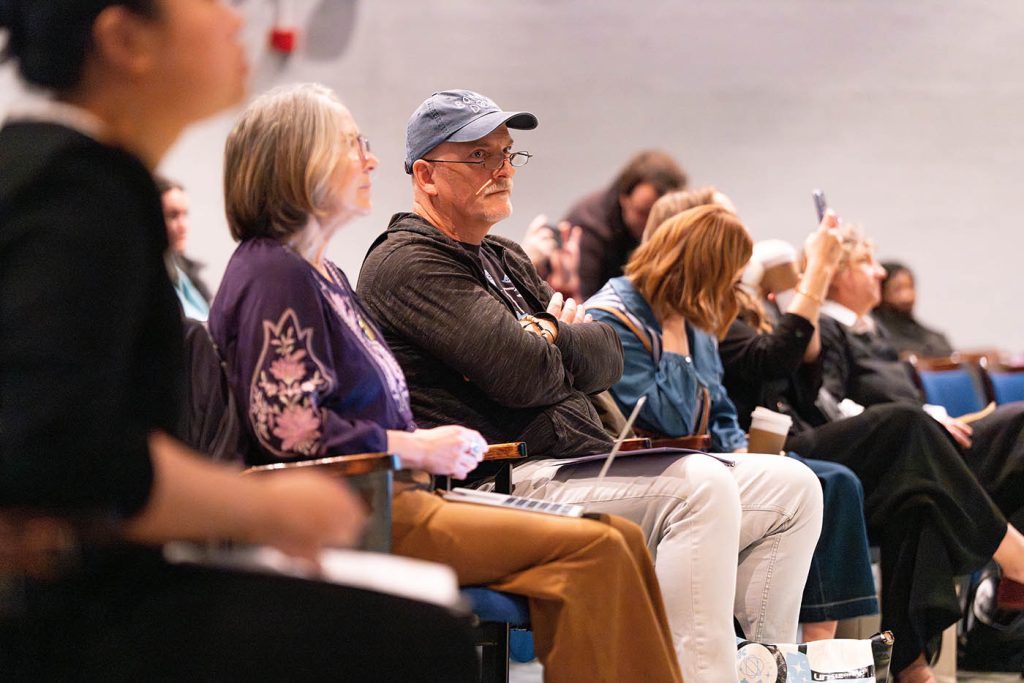The first day focused on the symposium and hands-on making. Invited speakers from universities across Virginia and beyond shared presentations on their research and creative practices, while an open-call Pecha Kucha session allowed emerging voices to contribute short, focused talks. Alongside this, workshops in letterpress printing, risograph printing, and tunnel book construction offered participants the opportunity to engage directly with physical publishing processes. The day concluded with an opening reception for m(other)ing, an exhibition co-curated by Feixue Mei with Meaghan Dee and Bree McMahon at the Duke Hall Gallery.