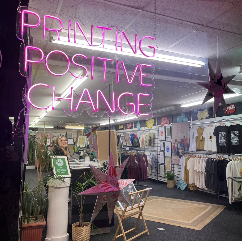 An accessory our team constantly wears is our badges that read Printing Positive Change. It’s a small accessory, free with every online order, and available to grab in our store, so that we spread our message and joy far and wide!