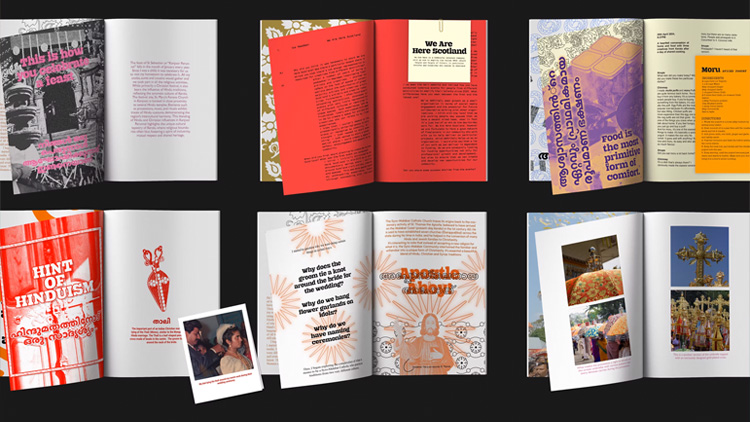 The publication is an archive of personal narratives, cultural intersections, and the story of the Syro-Malabar community through Maximilism and Bilingual Typography. It features immigration stories from creatives in Glasgow, insightful interviews with Glasgow-based design studios, and an exploration of the future prospects for creatives from diverse ethnic backgrounds.