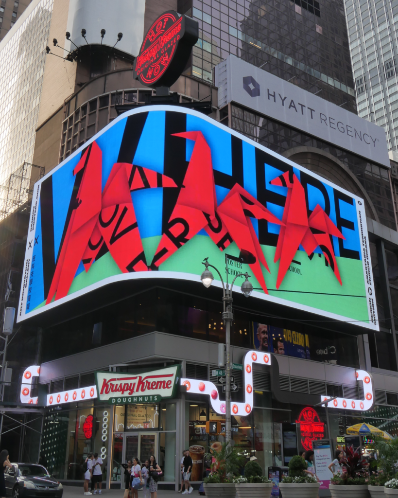 Supported by Art Innovation Gallery, the project didn’t just live online. For one week, from June 23 – 29, the animated posters appeared every hour on the giant screens of Times Square, New York, transforming one of the world’s most commercialised spaces into a spontaneous gallery of creative gratitude. Each frame flickered with movement and memory, a moment of reflection amid the noise of the city.
