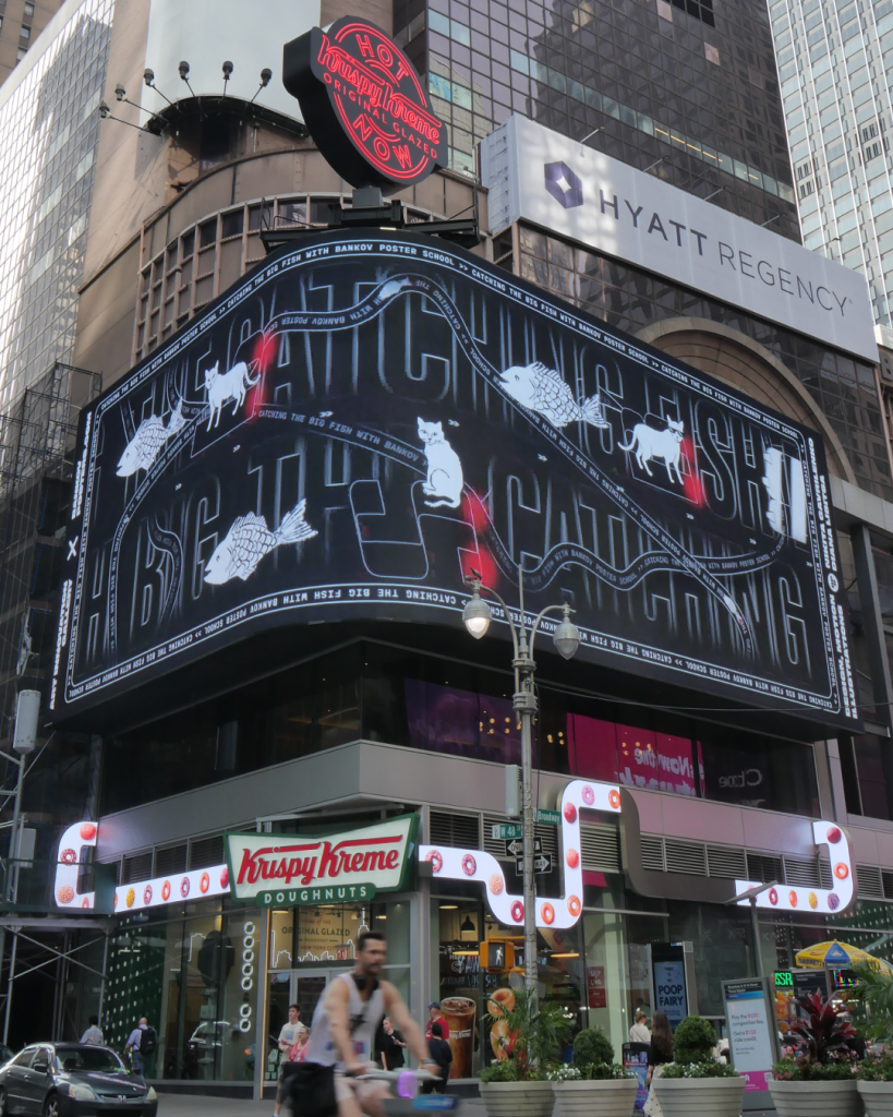 We have always wanted to honour Peter — he has become so much more than a teacher to many of us. But in this case, the idea almost found us. I received an invitation from the Art Innovation Gallery to take part in an exhibition in Times Square, and after discussing it with my friend Anastasia Temirkhan, we decided to turn it into something more meaningful than just a portfolio showcase. We wanted to connect it to what truly unites us — the anniversary of the Bankov Poster School.