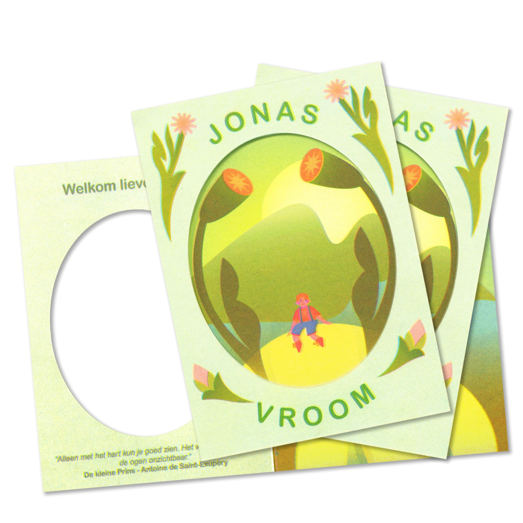 The project began organically with cards created for friends and family, including wedding cards and birth announcement cards. From there, requests grew steadily, particularly for birth announcements, which have a strong cultural presence in the Netherlands. These commissions have since become a core part of Tolsma’s practice, combining celebration, care, and storytelling within a small printed format.