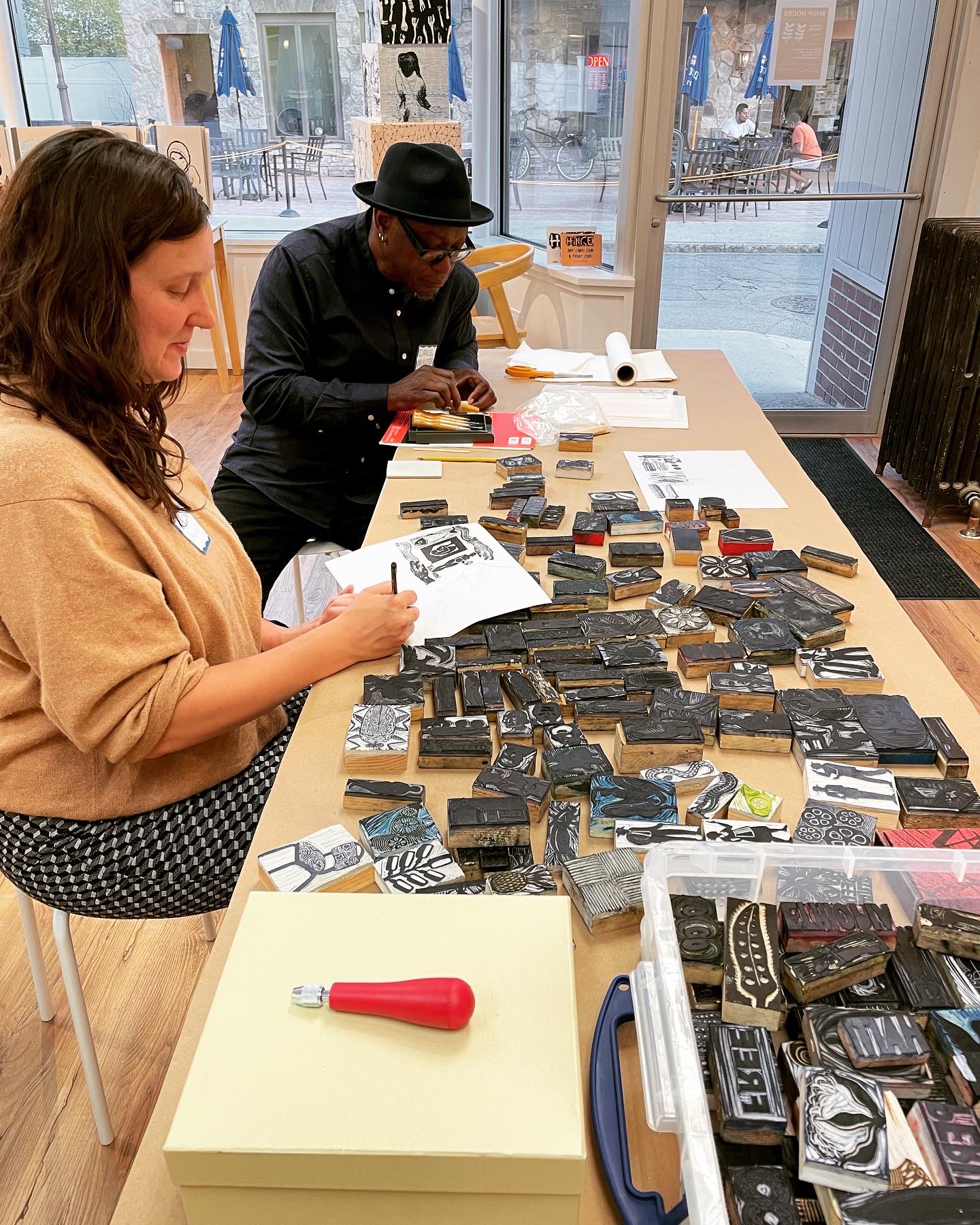 Hinge Collaborative is a contemporary atelier and creative platform founded by the artist team of Séan Alonzo Harris and Elizabeth Jabar. After 30 years of experience in making, exhibiting, teaching, and public engagement initiatives, the pair opened a storefront studio in Waterville, Maine, to showcase emerging and established artists working in printmaking and photography and invested in community building.