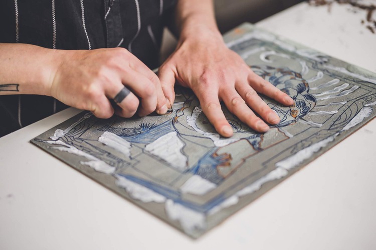 After focusing on painting canvases for many years, one day Carsten saw a two-colour linocut at a friend’s house and something clicked within him; “That must have been before the turn of the millennium and I haven’t let it go since,” comments the printmaker. With no formal training or studies in printmaking, Carsten believes it is his family that gave him the right attitude towards the craft (Carsten comes from a family of people who have been closely connected to printing and paper; his great-grandfather had a bookbinding business, and his father was one of the last master typesetters in the region), with the internet doing the rest. For many years, he worked in isolation, discovering and following along with other printmakers online, sharing knowledge through videos. However, he has now gone on to have met some great, helpful people, with the future hope of exhibiting more and collaborating with others.