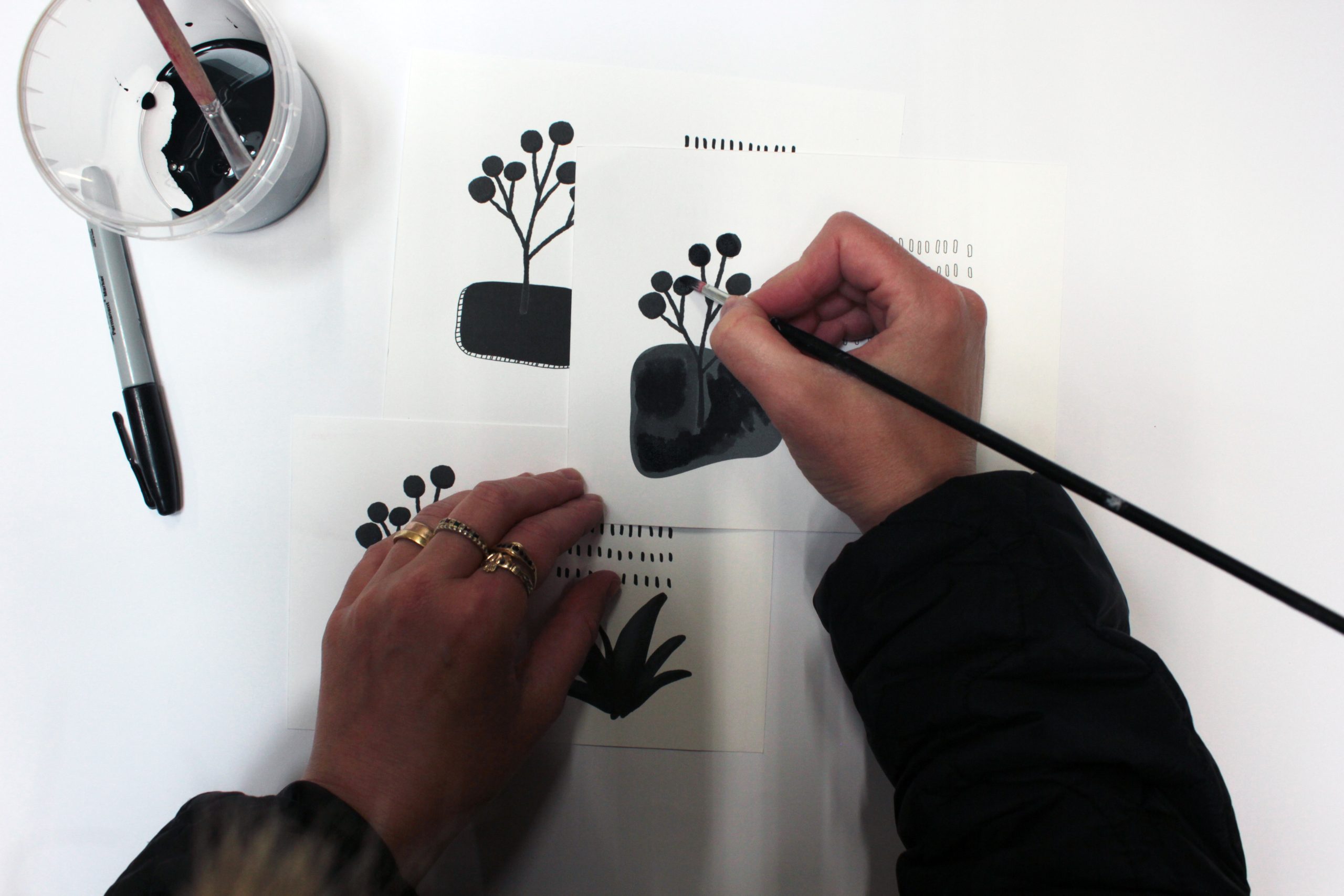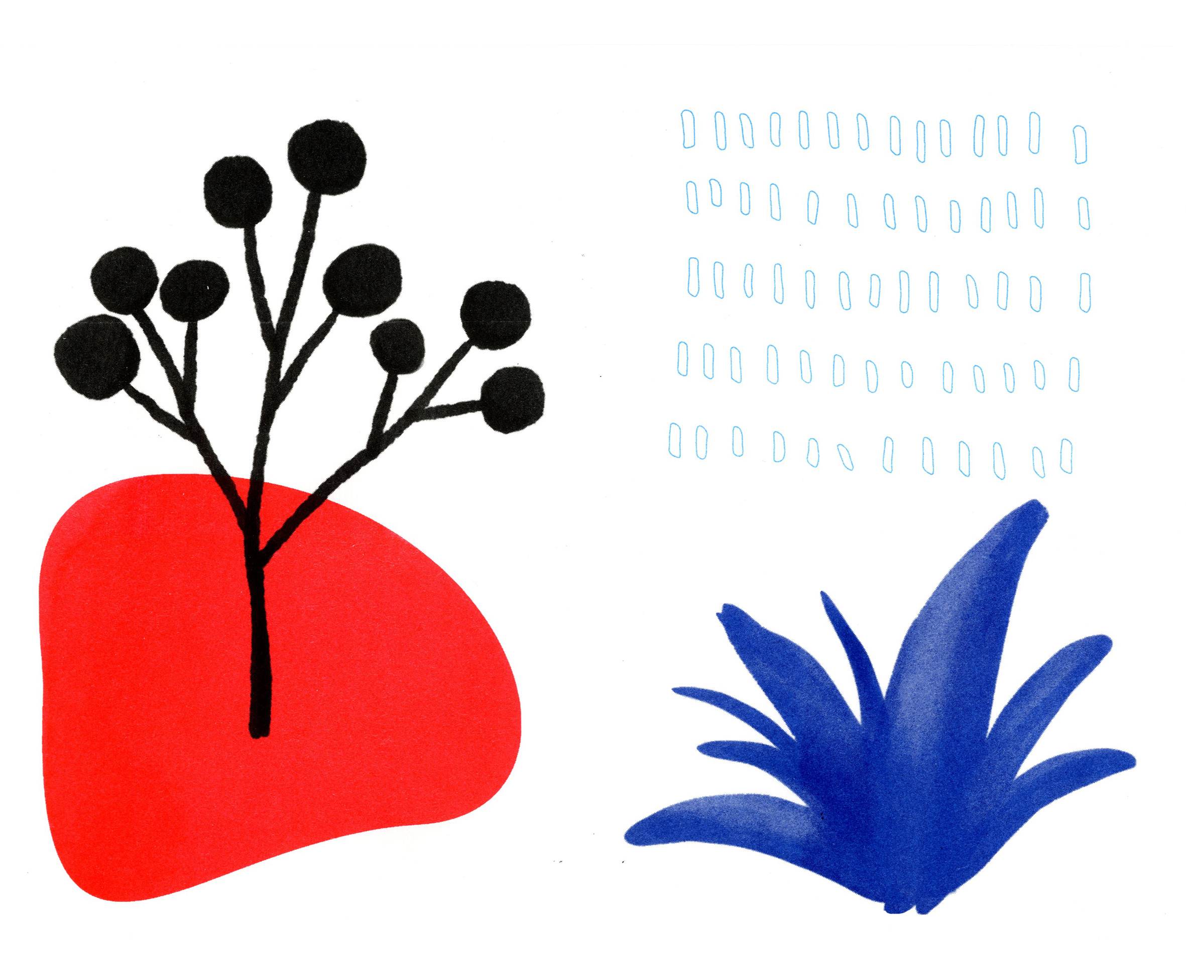 Similar to screen printing in both process and aesthetic, the immediacy of Risograph and its ability to produce multiple-colour prints relatively quickly has allowed EimearJean to incorporate a more spontaneous and experimental approach to image making and publication design. Currently, she is working on series of Risograph prints that are derived from spontaneous black and white ink sketches that looks at a diverse range of themes, from intimate moments of reflection to broader glimpses of fleeting beauty. The collection includes a variety of colour experiments and variations, exploring shape, line and composition. The prints combine the two processes into limited edition pieces printed on Munken Paper.