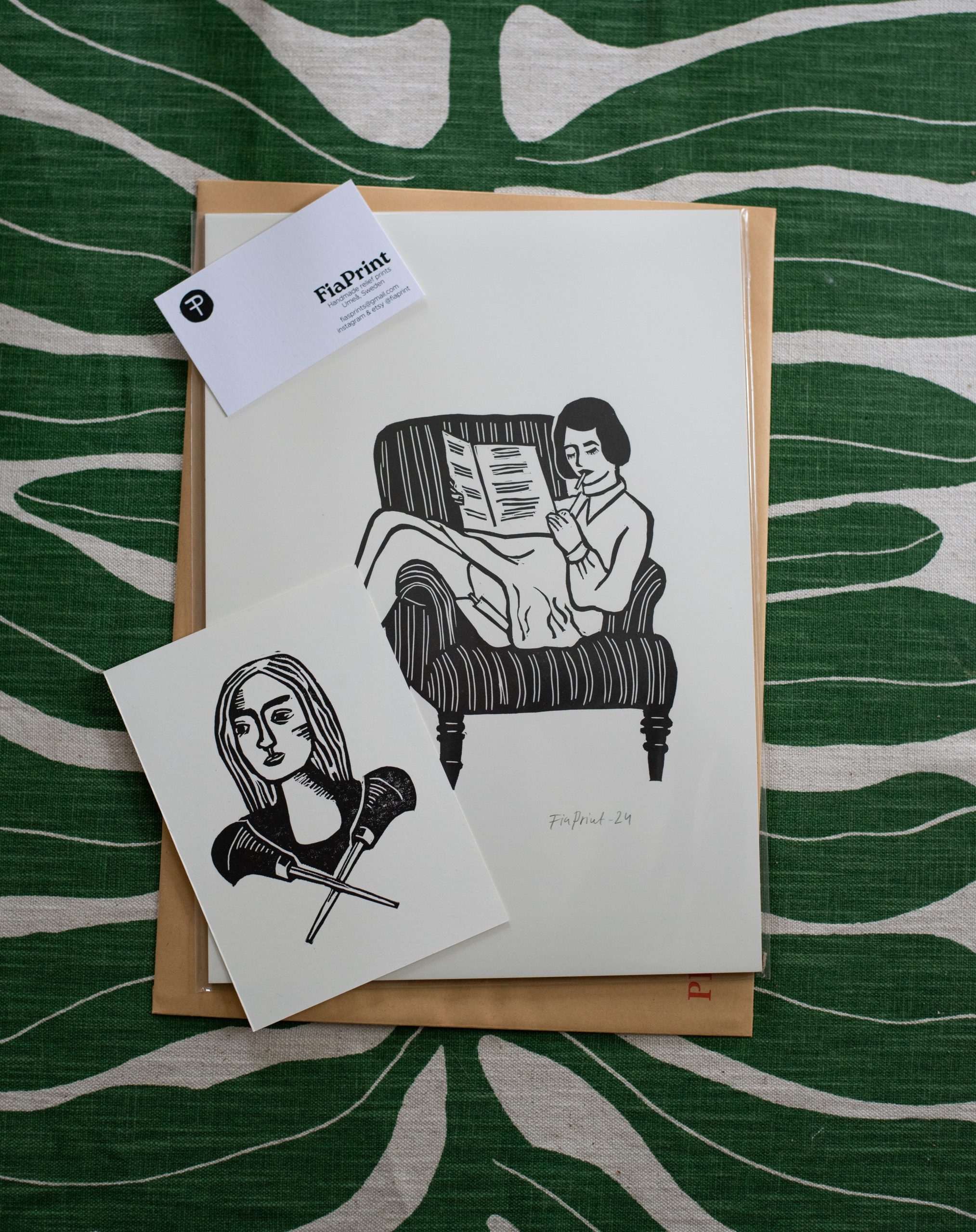 As most creative people, Fia has tried many different hobbies, but in the spring of 2021 she discovered linoleum printing which “instantly felt like my thing”. She has learnt a lot since then, built up a small studio, and formed an amazing network of creative people.