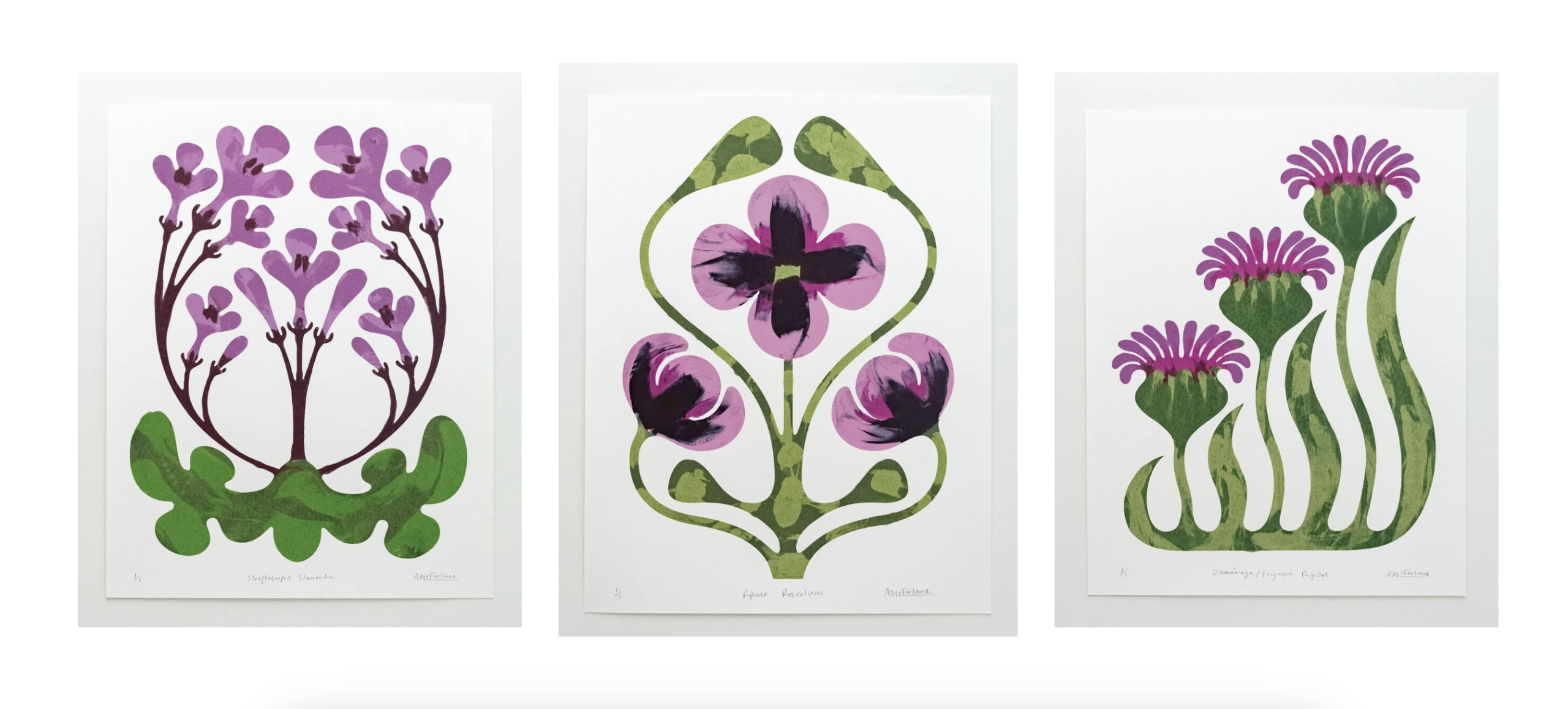 Bio-adversity: Plantae is a body of work by Annika McFarlane that brings biodiversity and printmaking together through process as much as concept. The project celebrates endangered plant species from A to Z, with each plant represented by a single, unique monotype screen print. In total, the series comprises 26 one-of-one prints, making each artwork as rare as the plant it depicts.