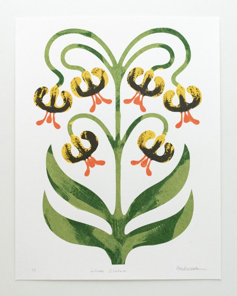 The project builds on McFarlane’s earlier Bio-adversity: Animalia, which explored endangered animals through a digital process. For the plant edition, she wanted to push herself further by moving away from the computer and into a more tactile, unpredictable way of working. Having recently begun exploring screen printing, McFarlane was drawn to the medium’s ability to balance her characteristically clean shapes and negative space with texture, variation, and chance.
