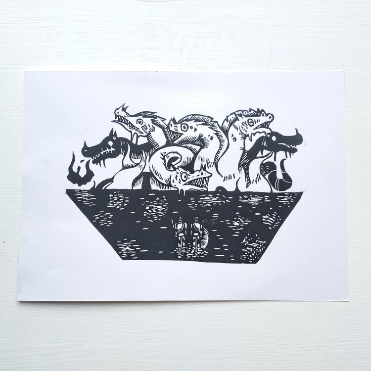 “I discovered linocut totally randomly after being offered a starter kit for Christmas,” Mazyar tells us. Having loved drawing for as long as he can remember, carving lino came naturally, and he quickly fell in love with the process. Thus, he is mostly self taught. Mazyar comments; “It really gave me what I was missing in my job, as I am 95% of the time on my laptop. Creating something with my hands, carving, inking, pressing… It helped me connect the dots.”