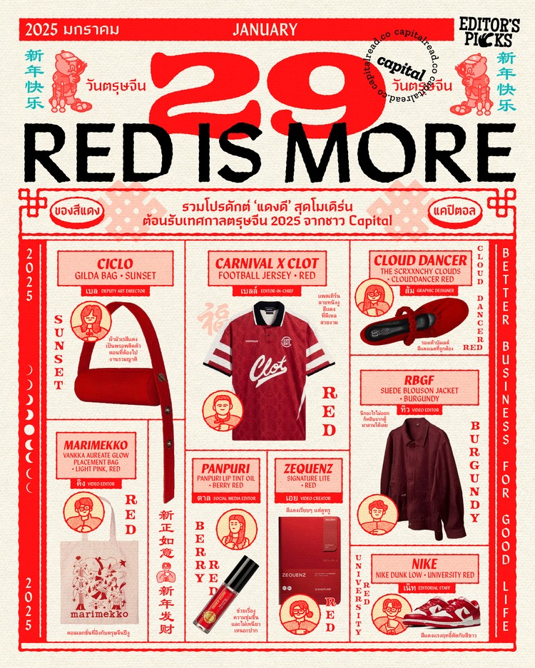 Beyond SOURPEMI, Bell works at Capital; a business media platform with a lifestyle approach. Here, she works as a deputy Art Director, using graphic design and illustration to visually enhance content communication. Some of her highlight projects here have included creating posters for the Editor’s Pick column, where Capital’s friends selected their favourite products based on a given theme (e.g., Lunar New Year’s red-themed products or favourite recycled items for Global Recycling Day). She has also created artwork for Bon Appétit (a podcast exploring business within the kitchen and food cycle), and ทรัพย์คัลเจอร์ (pronounced Sub-Culture, a podcast about businesses that shape subcultures). Add to Cart was another standout project, which involved designing posters inspired by video interviews, where each brand introduced its highlight product for a curated shopping cart.